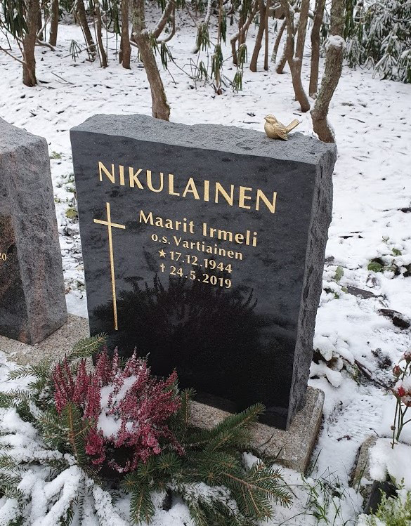 Hinnat sisältävät alv 25,5%, luonnoskuvan, muistomerkkianomuksen seurakunnalle, yhden henkilön tiedot kaiverrettuna ja maalattuna (kultaus +100 €), sahattupintaisen aluskiven tarvittaessa, kuljetuksen (alle 50km) sekä asennuksen. Hinnat ovat voimassa toistaiseksi.