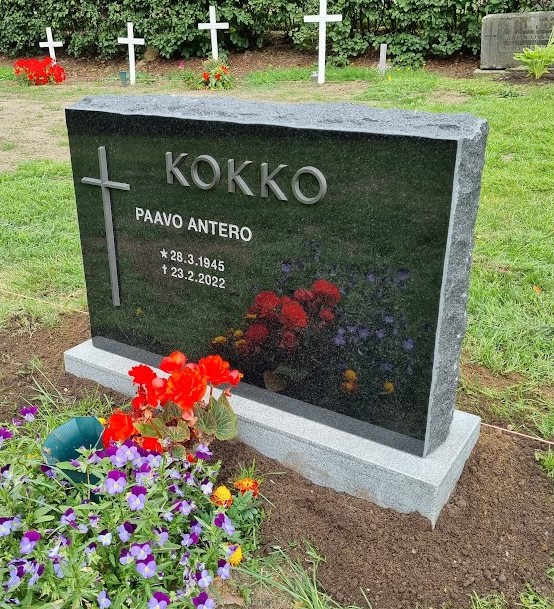 Hinnat sisältävät alv 25,5%, luonnoskuvan, muistomerkkianomuksen seurakunnalle, yhden henkilön tiedot kaiverrettuna ja maalattuna (kultaus +100 €), sahattupintaisen aluskiven tarvittaessa, kuljetuksen (alle 50km) sekä asennuksen. Hinnat ovat voimassa toistaiseksi.