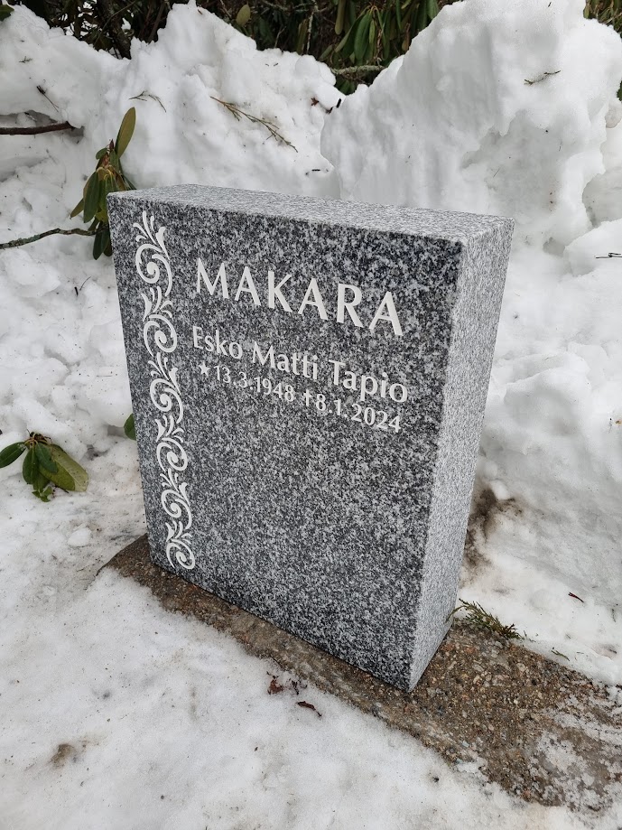 Tätäkin hautakiveä voidaan muokata mm. erilaisilla pronssikoristeilla ja kaiverruksilla. Ota yhteyttä ja laskemme hinnan toiveittenne mukaiselle muistomerkille.