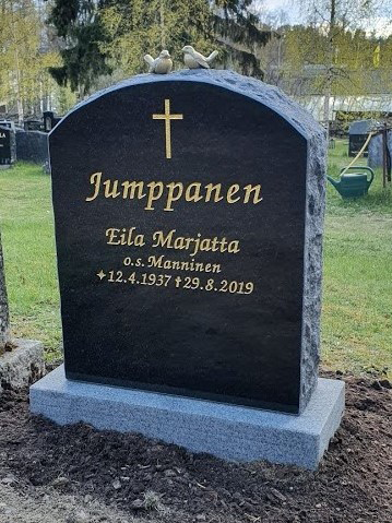 Hinnat sisältävät alv 25,5%, luonnoskuvan, muistomerkkianomuksen seurakunnalle, yhden henkilön tiedot kaiverrettuna ja maalattuna (kultaus +100 €), sahattupintaisen aluskiven tarvittaessa, kuljetuksen (alle 50km) sekä asennuksen. Hinnat ovat voimassa toistaiseksi.