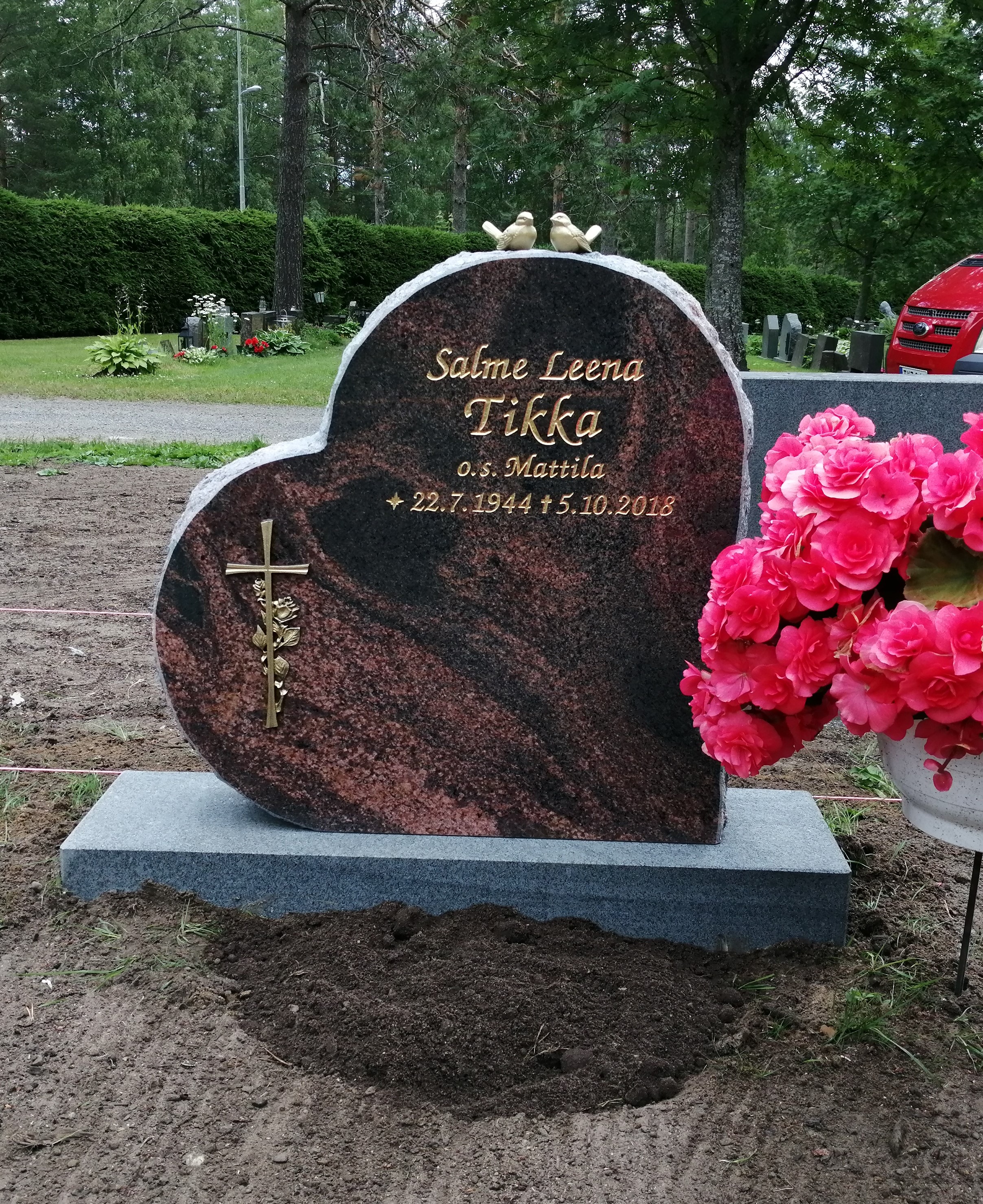 Hinnat sisältävät alv 25,5%, luonnoskuvan, muistomerkkianomuksen seurakunnalle, yhden henkilön tiedot kaiverrettuna ja maalattuna (kultaus +100 €), sahattupintaisen aluskiven tarvittaessa, kuljetuksen (alle 50km) sekä asennuksen. Hinnat ovat voimassa toistaiseksi.