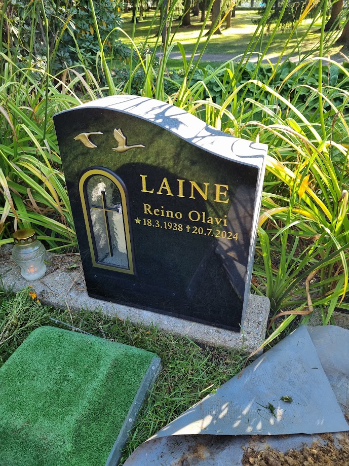 Hinnat sisältävät alv 25,5%, luonnoskuvan, muistomerkkianomuksen seurakunnalle, yhden henkilön tiedot kaiverrettuna ja maalattuna (kultaus +100 €), sahattupintaisen aluskiven tarvittaessa, kuljetuksen (alle 50km) sekä asennuksen. Hinnat ovat voimassa toistaiseksi.