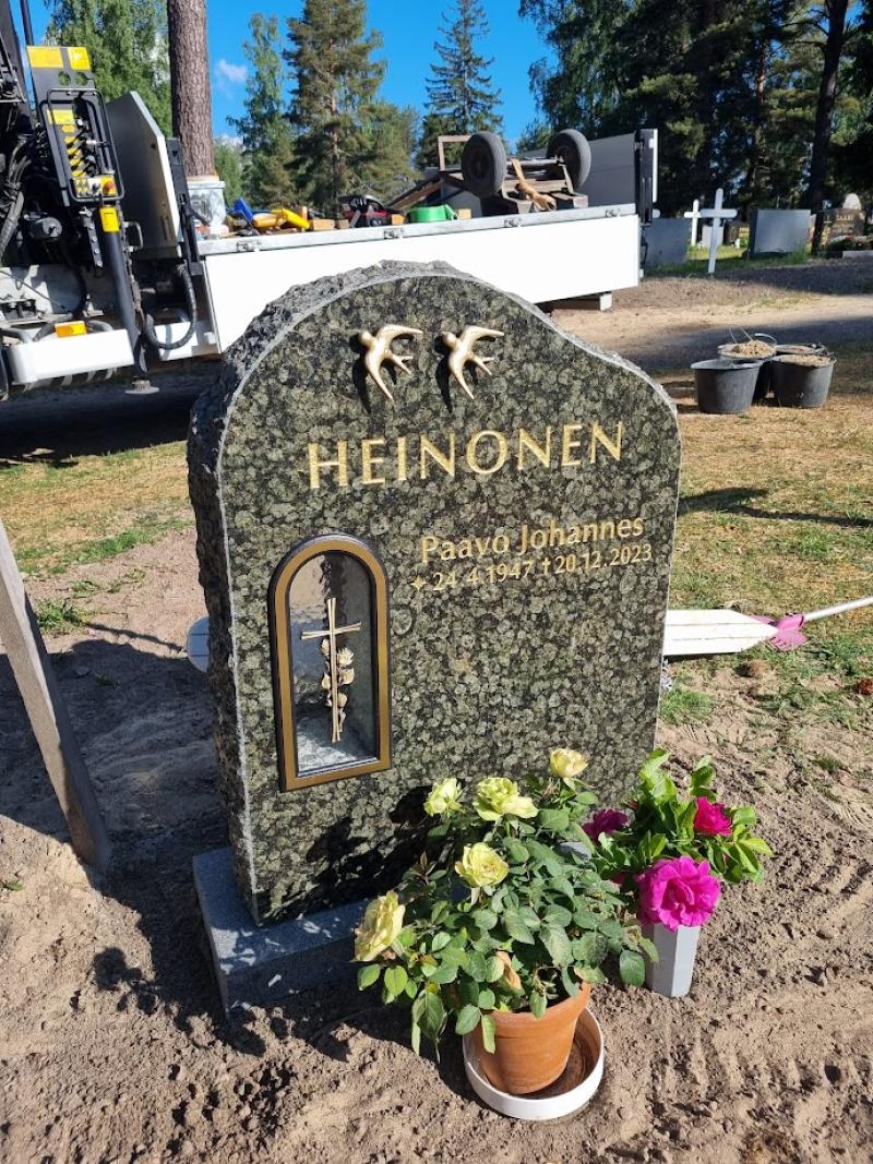 Hinnat sisältävät alv 25,5%, luonnoskuvan, muistomerkkianomuksen seurakunnalle, yhden henkilön tiedot kaiverrettuna ja maalattuna (kultaus +100 €), sahattupintaisen aluskiven tarvittaessa, kuljetuksen (alle 50km) sekä asennuksen. Hinnat ovat voimassa toistaiseksi.