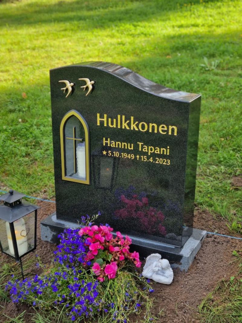 Tätäkin hautakiveä voidaan muokata mm. erilaisilla pronssikoristeilla ja kaiverruksilla. Ota yhteyttä ja laskemme hinnan toiveittenne mukaiselle muistomerkille.