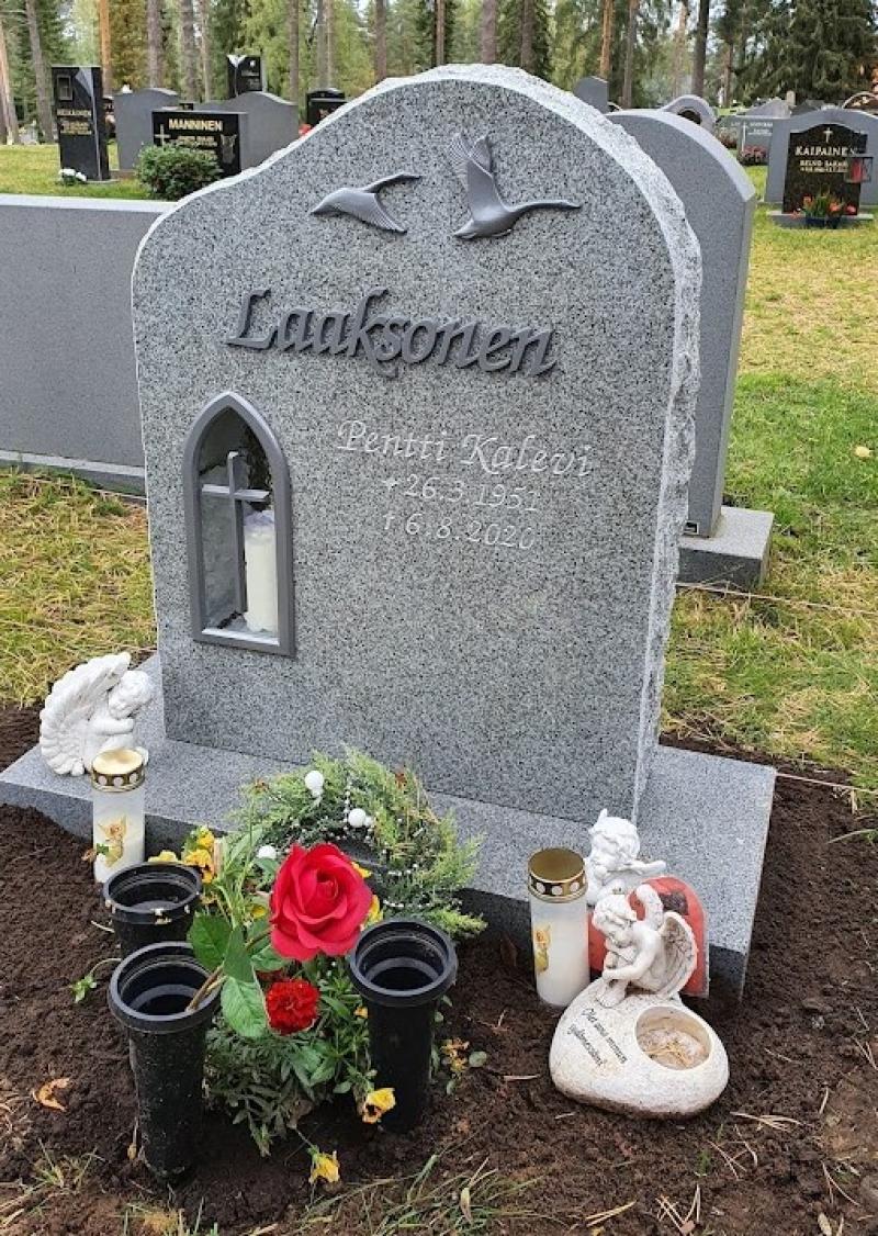 Tätäkin hautakiveä voidaan muokata mm. erilaisilla pronssikoristeilla ja kaiverruksilla. Ota yhteyttä ja laskemme hinnan toiveittenne mukaiselle muistomerkille.